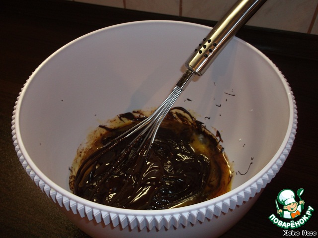 [+5]Пи.си. Думаю, шоколадный корж у меня не особенно удался. Когда я ввела шоколад в желтки у меня получилась очень тугая масса -не текучая. Потом, когда я ввела взбитый белок (очень постепенно) -все немного выправилось, но все равно шоколад у меня пошел крупинками в этом бисквите. Ларис, какой должен быть этот корж -он-то без муки? Здесь бы, конечно, я бы хотела более расширенное описание. Это не целях добавить ложку дегтя в кадушку с медом