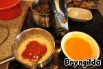 Добавляю 1 ст. ложку томатной пасты, лечо, предварительно взбитое погружным блендером, соль, кайенский перец, рыбную масалу, с ней поосторожнее она острая, но так как соус должен быть острым, то я добавила немного больше 0.5 ч. ложки и увариваю соус до готовности еще минут 10.