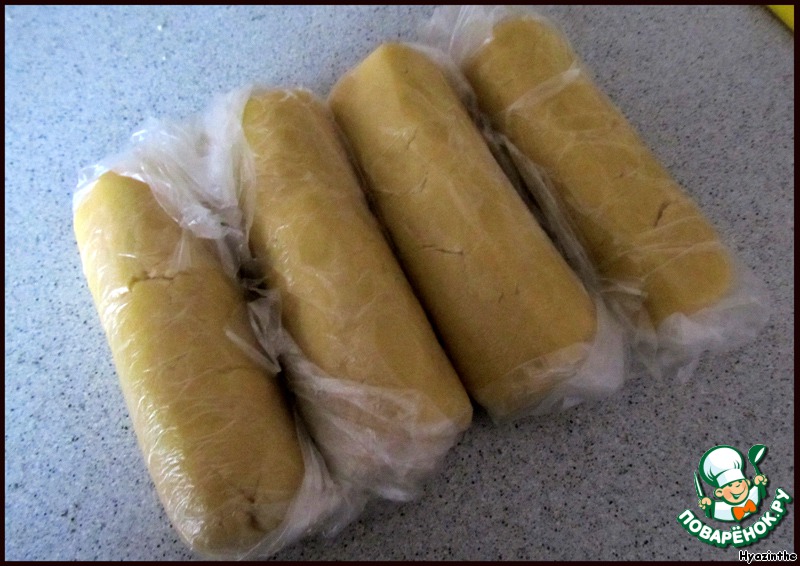 Скатываем 4 валика, заворачиваем каждый в пленку и отправляем на холод на 30 минут.