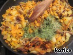 • Накрыть сковороду крышкой и слегка протушить все вместе на минимальном огне, периодически помешивая