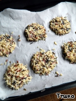 На бумагу с помощью ложки выложить рис в виде оладушек. Поставить в холодильник. -