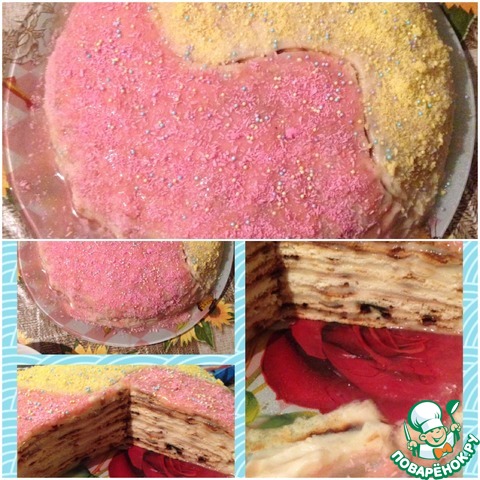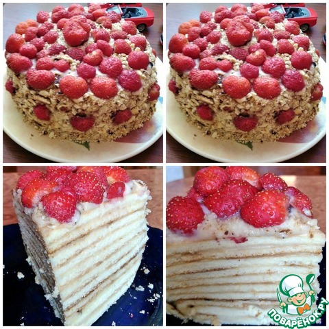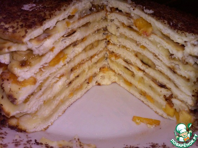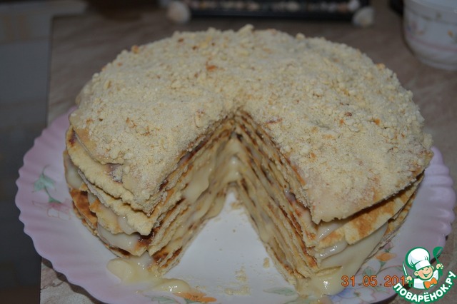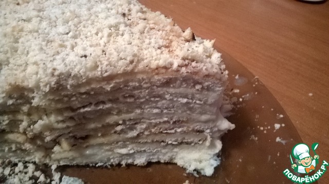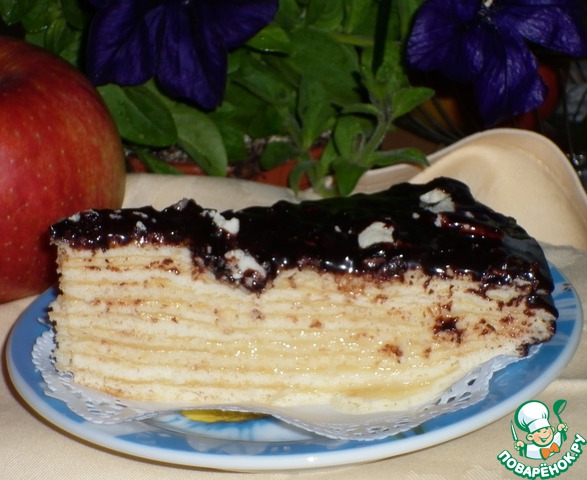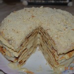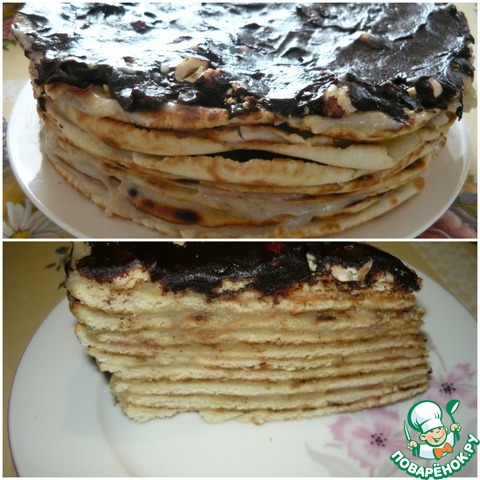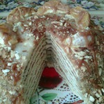 Попался мне этот рецепт, долго я на него глядела и решила приготовить. Очень он меня заинтриговал. Его не надо выпекать в духовке, коржи для этого торта готовятся на сковороде. Хотя в моем понимании, если торт - то обязательно дожен быть приготовлен в духовке. На приготовление каждого коржа уходит буквально минута. В итоге получился очень нежный, мягкий торт. Его вкус меня поразил, если б не знала, то никогда бы не подумала, что он готовился на сковороде.