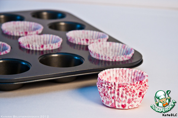 2. Включаем духовку на 200 градусов. Раскладываем бумажные капсулы по формам.