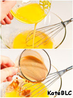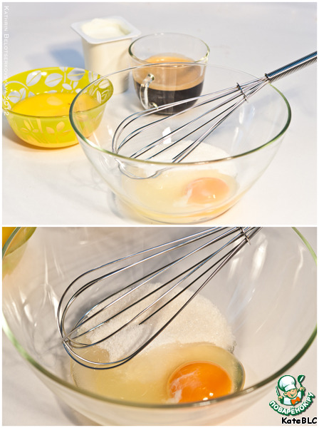 Яйца перемешать в отдельной миске с сахаром. -