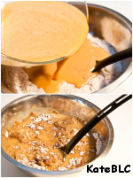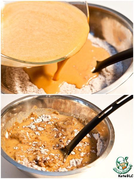 6. Теперь вливаем жидкую смесь в сухую.