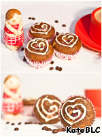 10. Растапливаем оставшийся белый шоколад (я положила в пакет и растопила в микроволновке) и разрисовываем расплавленным шоколадом теплые, но не горячие маффины. Сердечки, цветочки, полосочки, звездочки - как душе угодно!