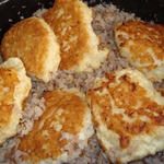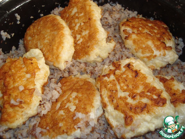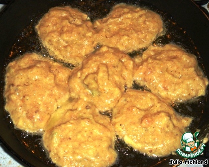 Получаем массу, которую выкладываем ложкой на раскаленную сковороду.
