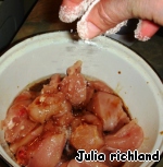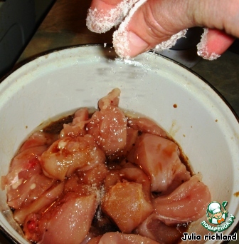 Подготовленное филе солим, перчим и маринуем в соевом соусе с добавлением специй.