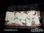 В форму, смазанную маслом, выложить 1/3 часть фарша. Сверху разложить ломтики брынзы.