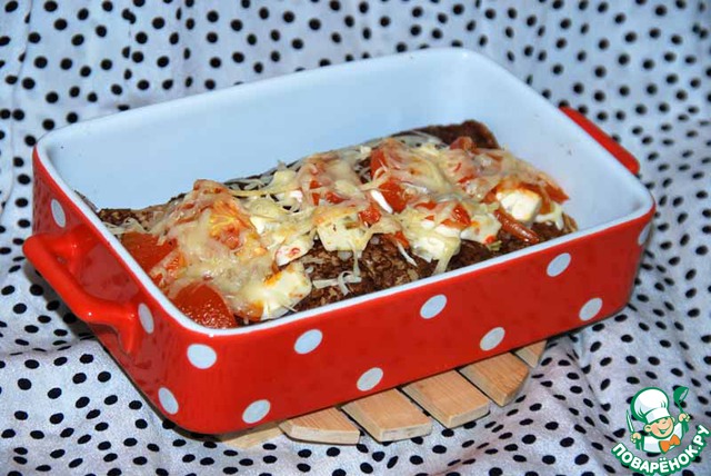 Сырно-сливочную смесь положить на пирог и поставить в разогретою до 180 градусов духовку на 10 минут. Потом еще на 5 поставить под гриль.