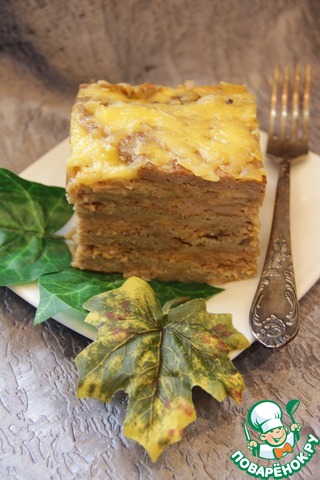 Все блинчики готовы, выкладываем их в смазанную сливочным маслом форму. У меня формы подходящего размера не было, я сделала в 2-х разных формах.