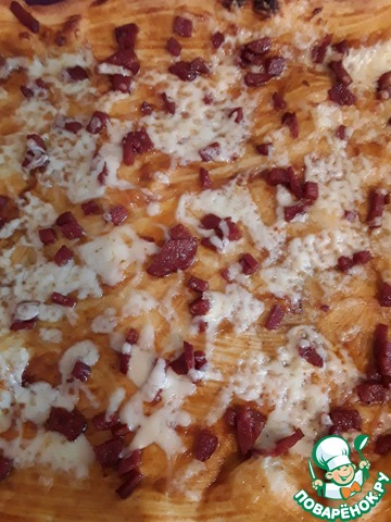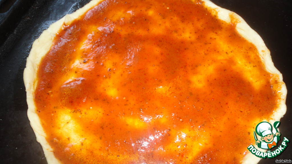 Противень или форму нужно предварительно намазать растительным маслом. Если мы готовим на противне, то необходимо сделать "бортик", чтобы не вытекал соус и сыр.