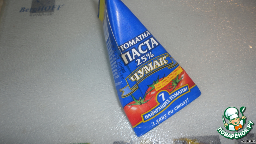 Пока хлебопечь месила тесто, я готовила соус. Ни в коем случае не используйте для пиццы кетчуп. Кетчуп используется для готового блюда и при тепловой обработке распадается на составляющие и подгорает. Как говорил шеф-повар из "Специи", соус - это душа пиццы. У каждой пиццерии он свой и хранится в жутком секрете. Как правило, соусы отличаются специями. В передаче показали два соуса. Один готовился из итальянских консервированных в собственном соку томатов. Дорого - жаба давит. Второй - из свежих помидоров. Сейчас (зимой) они по 25 грн. (более 100 руб.) за 1 кг. Тоже жаба давит. Летом я его обязательно приготовлю и выложу на сайт. А сегодня, послушав советы и принципы, я приготовила соус из томатной пасты.