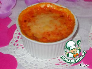 • Посыпать сыром. Выпекать в разогретой до 220град. духовке в течение 15мин., если формочки индивидуальные, 20-25мин., если в большой форме.