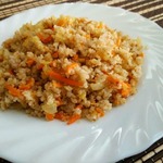 Через 20 минут ароматная и вкусная каша готова. Можно ее есть как гарнир к мясу, можно с овощами, а можно приготовить необычный салат с креветками.