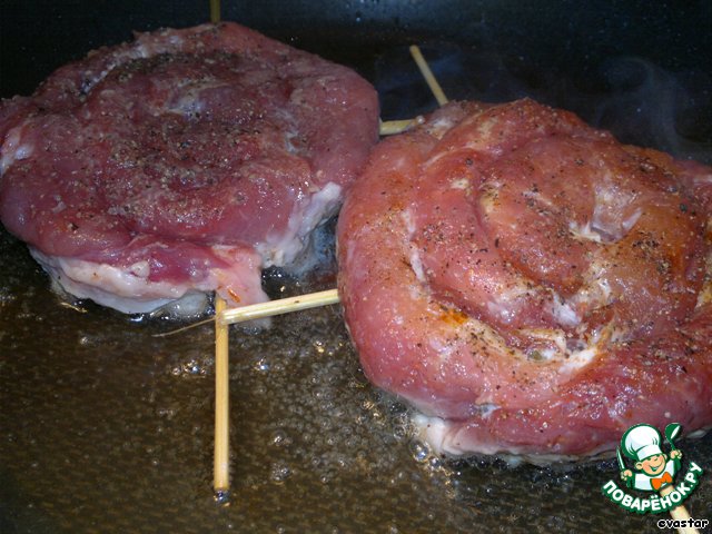 Когда есть настроение приготовить для любимого мясоеда что-нибудь особенное из обычных продуктов, мой рецепт вполне может пригодиться. Также можно и любимого привлечь на помощь, потом ему блюдо покажется еще вкуснее (ну, он же благородно помог!). Рецепт нашла в недрах Интернета, но кое-что доработала под себя. Думаю, получился оригинальный и неизбитый вариант приготовления мяса.