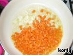 В разогретое масло добавляем лук, слегка обжариваем. Потом морковь.