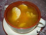Автор любит этот суп с "ароматным тонким блином", так текст перевел автопереводчик.