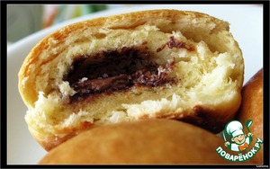 • Нарвать тесто на порционные шарики, раскатать. В серединку положить ломтик шоколада.