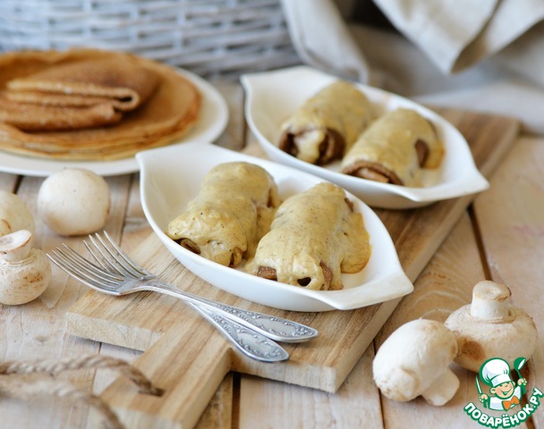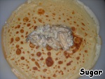 На середину блина кладем грибы, где-то 1-2 ст. ложки.
