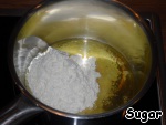 Готовим соус "морнэ" - это тот же соус "бешамель", только с добавлением сыра. В кастрюле растапливаем масло, добавляем муку.