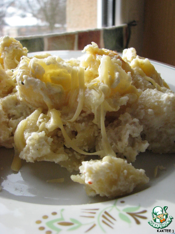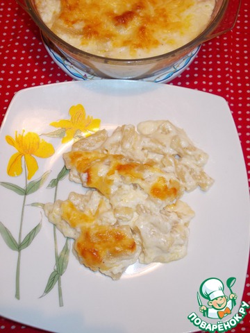 Выложить пасту в сливочном соусе в огнеупорную посуду.