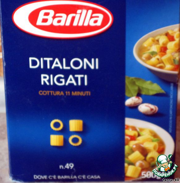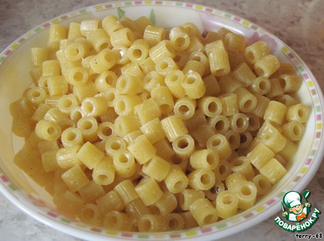 Макароны у меня были вот такие, можно использовать спиральки, рожки. -