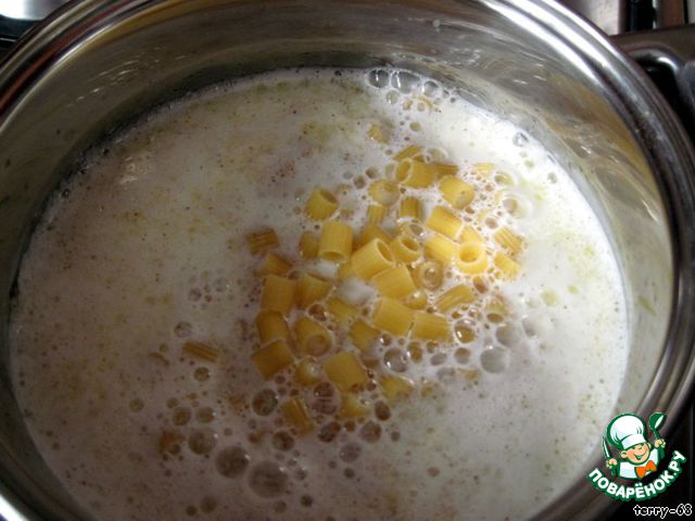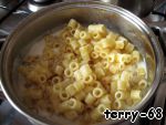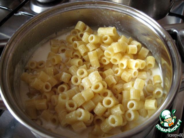Откинуть макароны на дуршлаг, жидкость (молоко) собрать (не выливать, нам молоко еще понадобится).