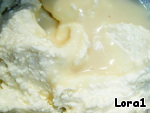 7. В творог выливаем по столовой ложке сгущёнки и ликёра Бейлиз (можно любой, на ваш вкус, просто я очень люблю именно этот)