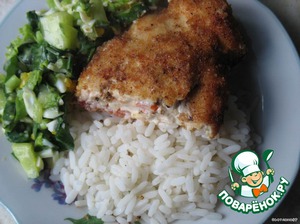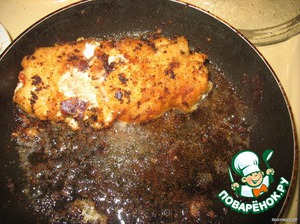 Обваливаем в панировке, жарим под крышкой, пару раз перевернув. Жарим недолго, чтоб мясо не стало сухим.