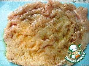 Смачиваем соевым соусом и оставляем на пару минут.