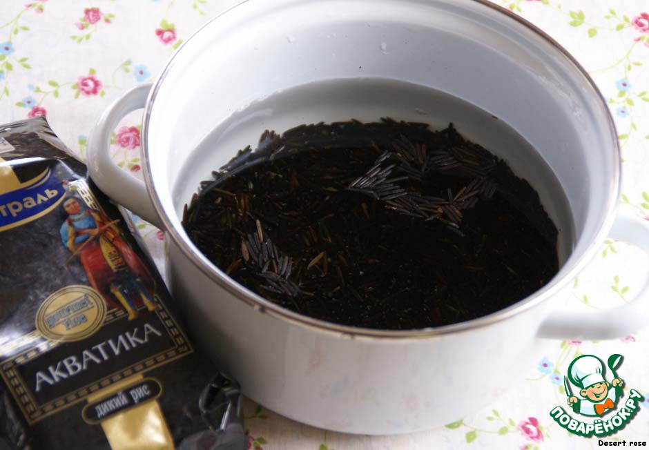 Отварить заранее дикий рис в воде (соотношение 1:3) до мягкости.