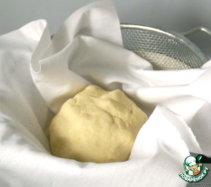 Скатать тесто в шар. Завернуть его в полотенце и положить на дуршлаг, поставленный на миску с кипятком. Так тесто разбухнет и станет более эластичным. Через 20 минут оно будет готово.
