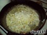 • Режем мелко репчатый лук и обжариваем его на растительном масле (или на любом жире).