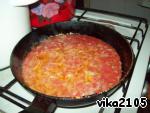 • Когда лук станет золотистым, добавляем томатный сок или томатную пасту.
