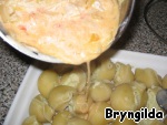Выкладываю башмачки в форму и заливаю заранее подготовленным соусом. Причём, если соус не закроет изделия на 2/3 , то следует долить бульоном от варки.