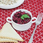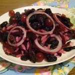 Смешиваем рис со свеклой, луком и изюмом, пробуем на соль.