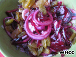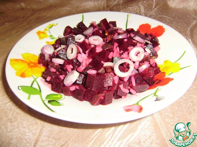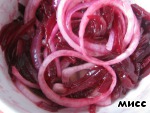 Добавляем свёклу к маринованному луку, перемешиваем.