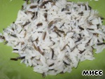 Предварительно отвариваем рис. Для этого салата подойдёт обычный длиннозёрный рис, но мне нравится смесь пропаренного и дикого риса, поэтому использовала её.