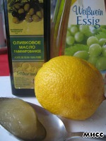 Далее делаем маринад из оливкового масла, уксуса, сока лимона и мёда.