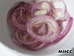 Заливаем маринадом лук и оставляем промариноваться на 5 минут.