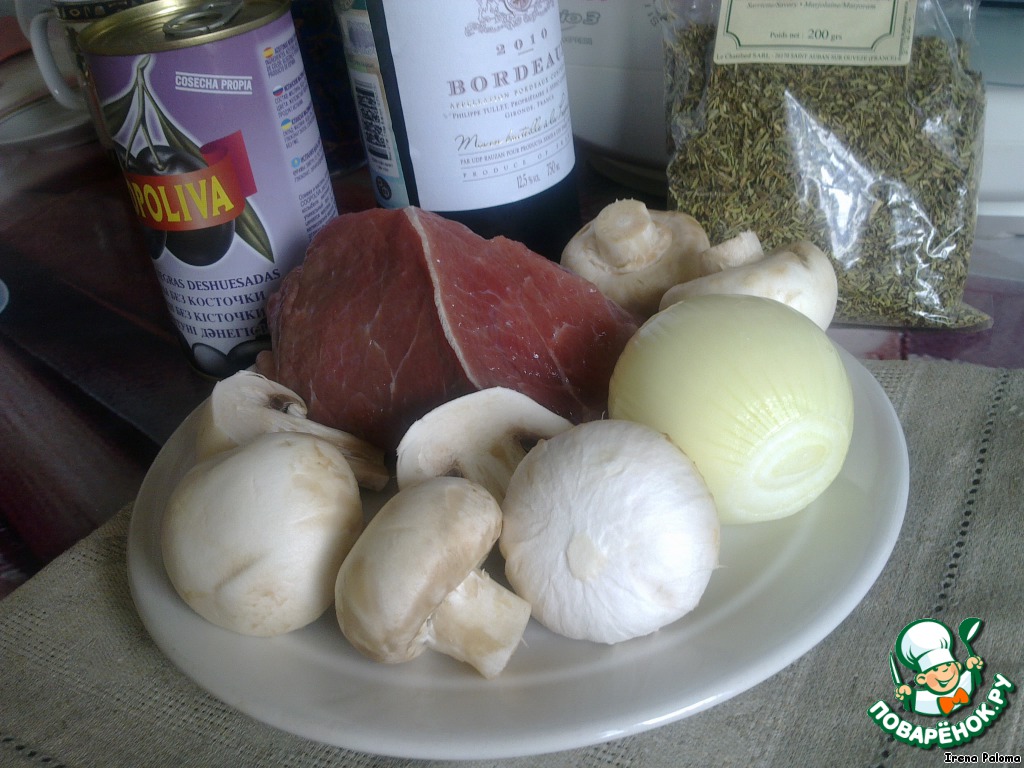 Рецепт «Телятина с грибами в вине»: