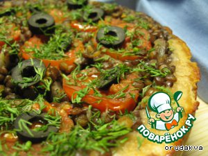 Рецепт "Перевернутый пирог с помидорами и чечевицей":