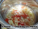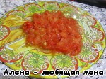 Помидор очистить от кожицы и по возможности от семян (у меня свои замороженные помидоры, без кожицы, но с семенами) и мелко нарезать