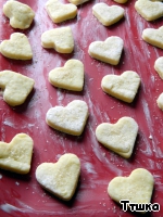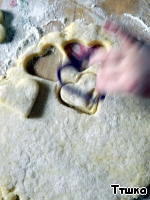 Достать тесто из холодильника и раскатать (не тонко). С помощью формочки вырезать сконы (у меня сердечко), кстати, формочку мне прислала Лариса.