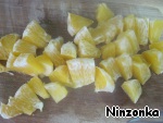 • Апельсин почистить и нарезать на небольшие кусочки.