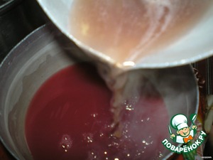 Распустить желатин в холодной воде. Сок подогреть с ванилью. Растворить желатин и смешать с соком. -