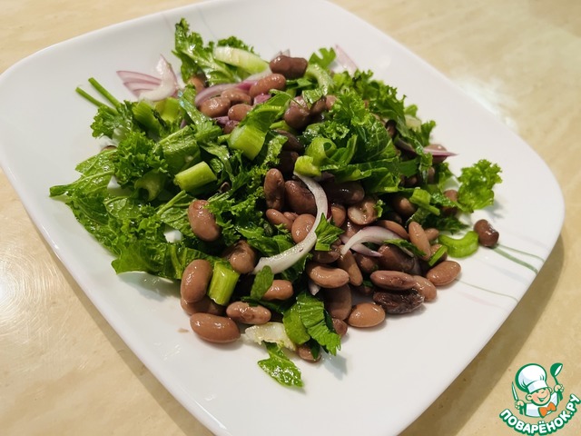 Фасоль промыть водой. Выложить в салатник.