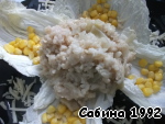 Следующим слоем засыпать рис. (Я его предварительно пропарила, но это необязательно).