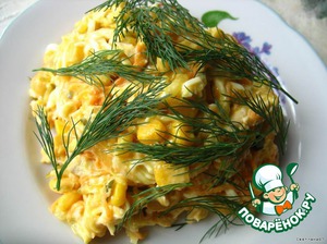 Когда хочется простого и банального салата с крабовыми палочками, отправляешь мужа в магазин за ингредиентами, а он приносит все, кроме, собственно, крабовых палок, но почему-то приносит незаказанное куриное филе, получается вот такой альтернативный салат :)